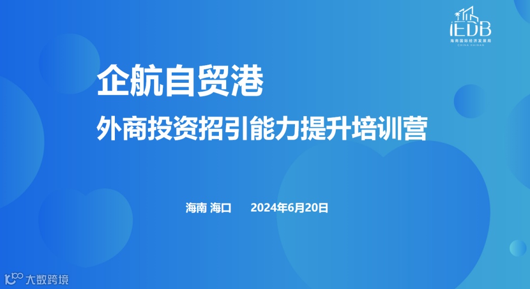 6月20日,企航自贸港·外商投资招引能力提升培训营在海口中交国际自贸中心举办。海南国际经济发展局局长助理刘建围绕“持续扩大对外开放,稳住外贸外资基本盘”主题,向来自全省各市县、各园区约30家招商机构的100余名代表进行专题授课与分享。