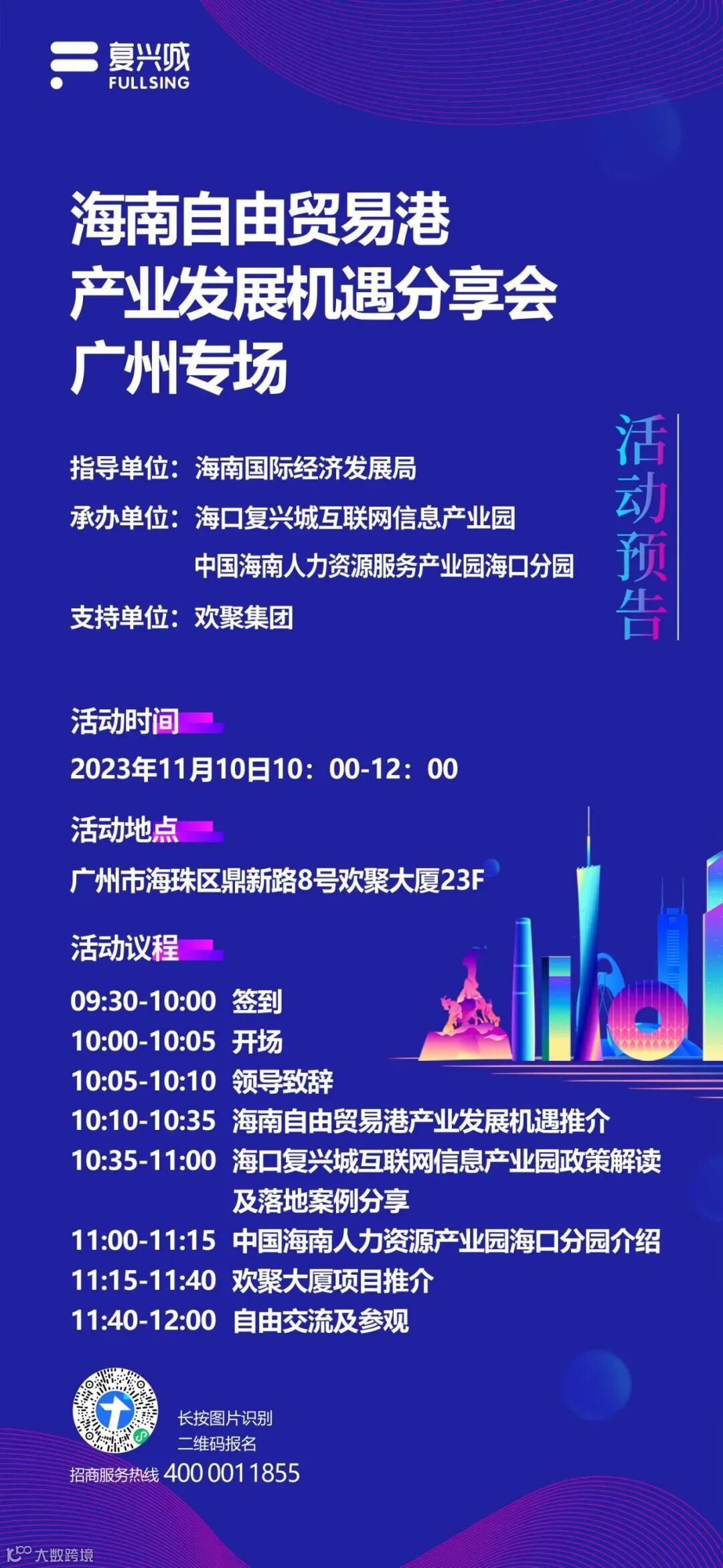 活动预告丨海南自由贸易港产业发展机遇分享会(广州专场)
