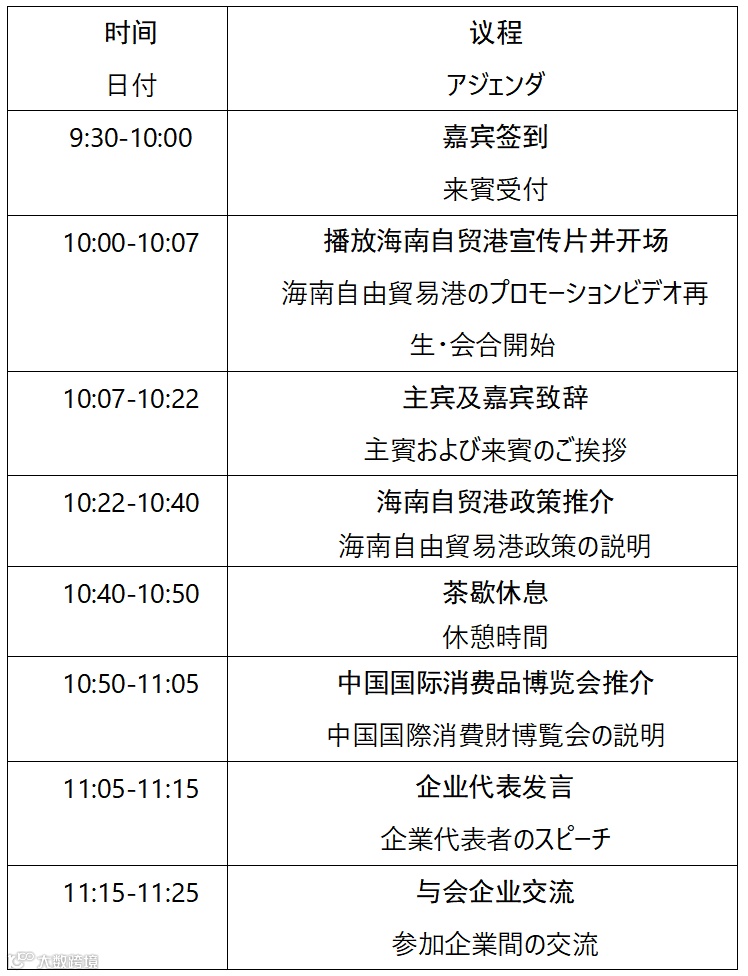 推介会将围绕海南自由贸易港政策优势,解读自贸港投资机遇,宣介中国国际消费品博览会,增进日本企业对海南自由贸易港的了解,增强日本企业对海南投资兴业的信心。