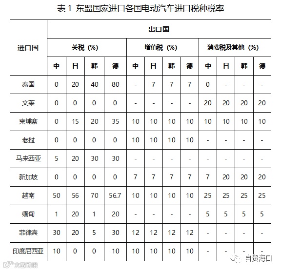 2022年初《区域全面经济伙伴关系协定》(RCEP)正式在15个亚太国家生效实施。关于东盟国家进口各国电动汽车进口税种税率如下: