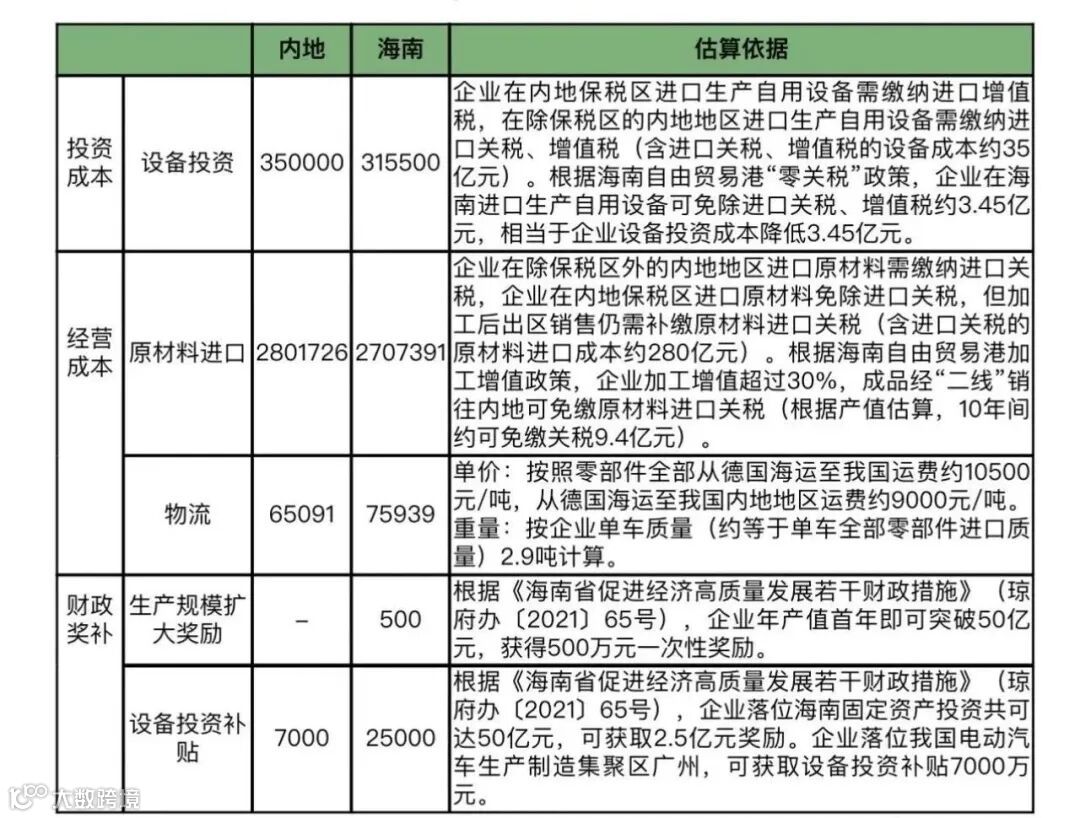 同理,可以算出日本、韩国的高端电动汽车在海南组装和直接出口到东南亚5国的差价。