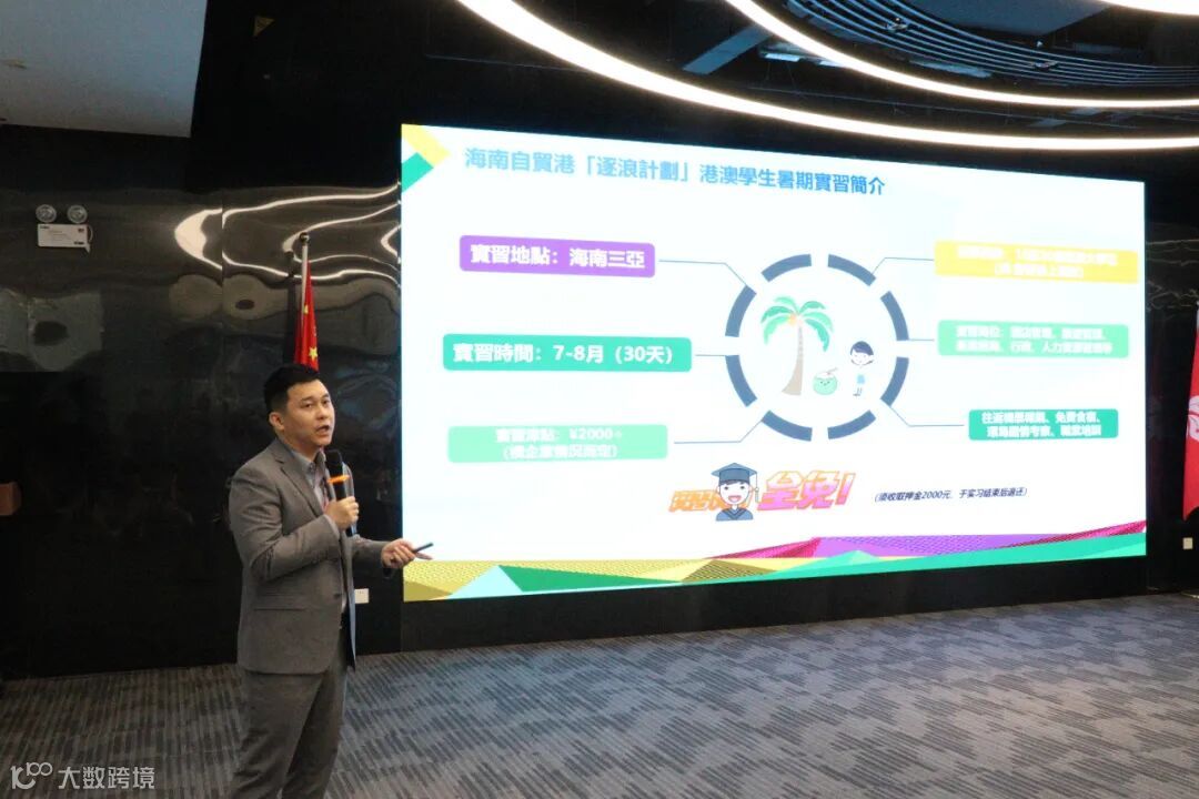 服务中心工作人员详细讲解了公司的信息交互、活动企划、服务落地三大职能,还特别推介了海南自贸港·港澳大学生暑期实习“逐浪计划”,诚挚邀请各位同学在暑期来海南参加职场培训学习和国情考察,将个人理想与国家需求相结合,在海南寻找梦想的舞台,深度融入国家发展大局。