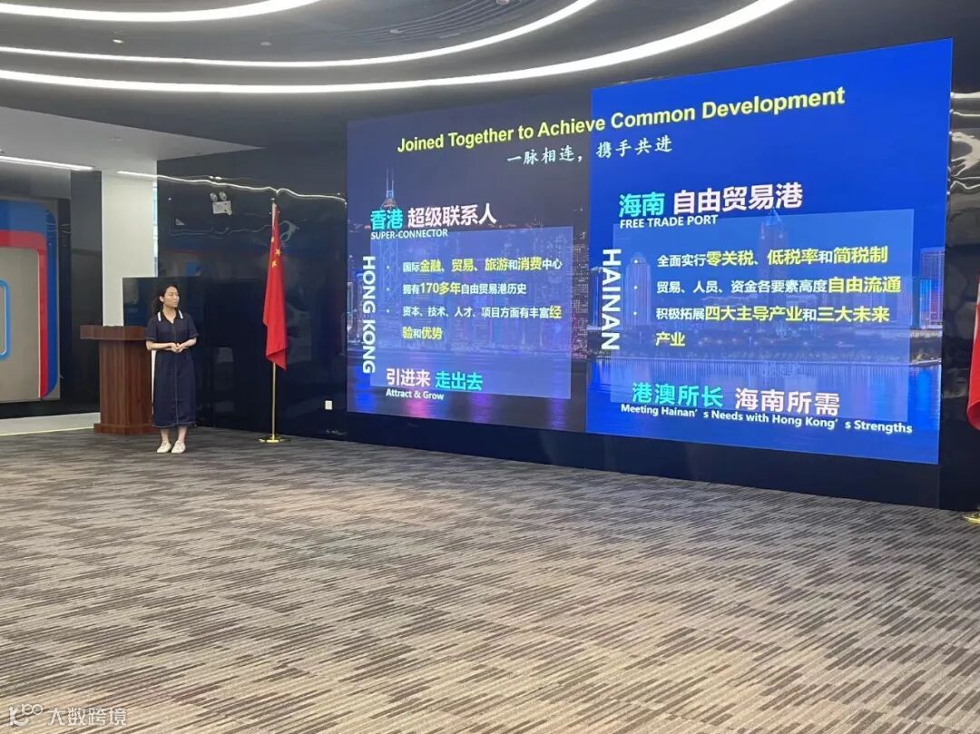 为让更多港澳台青年了解海南自贸港建设情况及来琼就业创业政策支持,在服务中心路演大厅,海南国际经济发展局全球新闻官鲁斯兰向同学们宣传推介海南自由贸易港的重大发展机遇,广泛宣介海南自贸港政策优势和投资新机遇,增强同学们对海南自贸港的了解,鼓励和发动同学们把海南作为施展才华、实现梦想的考量点,共享海南自贸港红利。此外,还重点针对琼港经济合作进行了详细阐述,通过对比海南自贸港和粤港澳大湾区各自的优势,表明进一步深化琼港合作,推动海南自贸港和粤港澳大湾区联动发展极具重大意义。