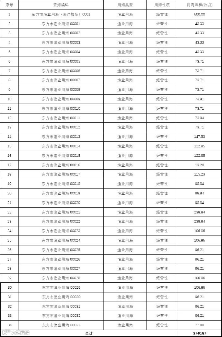 在海洋专场推介会上,东方市推介海域共计34宗,总用海面积3740公顷,其中海洋牧场用海1宗面积600公顷、深水网箱养殖用海33宗面积3140公顷。用海用途主要为发展海洋牧场、中大型深水网箱养殖等。