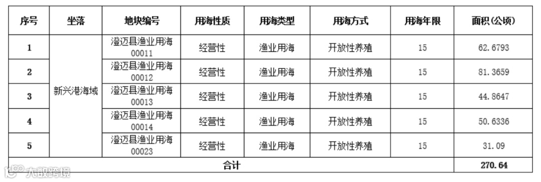 澄迈县在海洋专场推介会上通过四个方面进行推介,详细介绍澄迈县基本情况、老城科技新城发展定位情况,自贸港建设通用政策和澄迈县特色优惠政策以及海洋区块与海洋牧场现状,隆重推荐了桥头镇新兴港5宗海域优质海块,总用地面积270.64公顷,均位于桥头镇玉包村委会新兴港海域。用海性质主要为渔业用海。