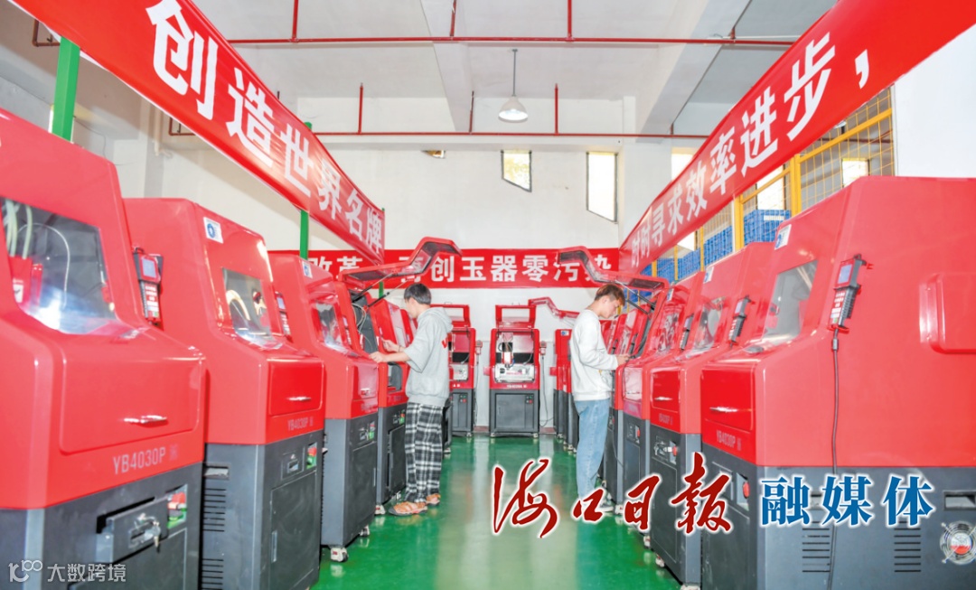 数台机器整齐排列,轰鸣声此起彼伏,源矿翡宝供应链(海南)有限公司共享厂房内,一块块翡翠原石经过分拣、切割、雕刻、打磨、抛光等工序后,“摇身”出落成一件件晶莹透亮、造型精致的翡翠成品。