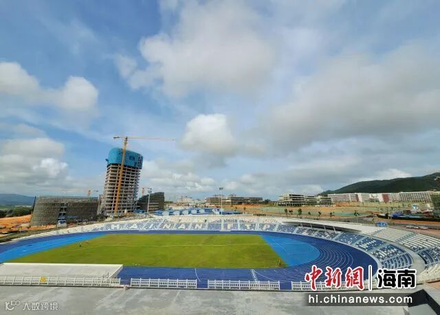 陵水黎安国际教育创新试验区已经验收了的滨海体育场,左侧是19层高的图书馆。王晓斌摄(资料图)