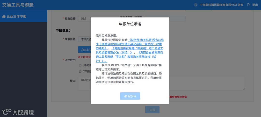首次申报进口“零关税”交通工具及游艇的企业,应在国际贸易“单一窗口”或“互联网+海关”平台完成海关企业注册登记,并登陆国际贸易“单一窗口”的“海南零关税进口生产设备、交通工具平台”完善企业账户信息。