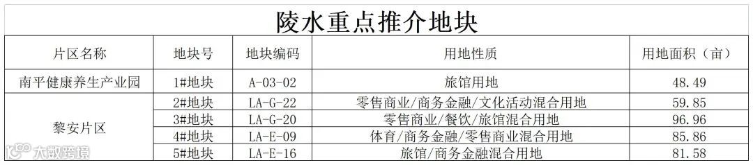本次重点推介地块共计5宗,其中南平健康养生产业园1宗,黎安片区4宗。总用地面积372.74亩,用地类型主要为旅馆用地、旅馆/商务金融混合用地、零售商业/餐饮/旅馆混合用地等商服用地。