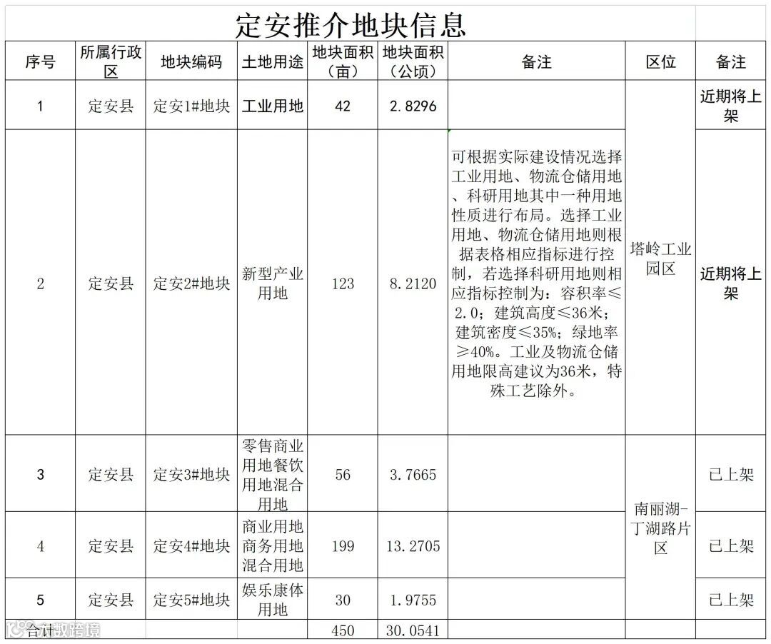本次重点推介地块共计5个,其中塔岭工业园区2个地块,南丽湖-丁湖路片区3个地块,总用地面积467亩,用地类型主要为工业用地、商业服务用地。