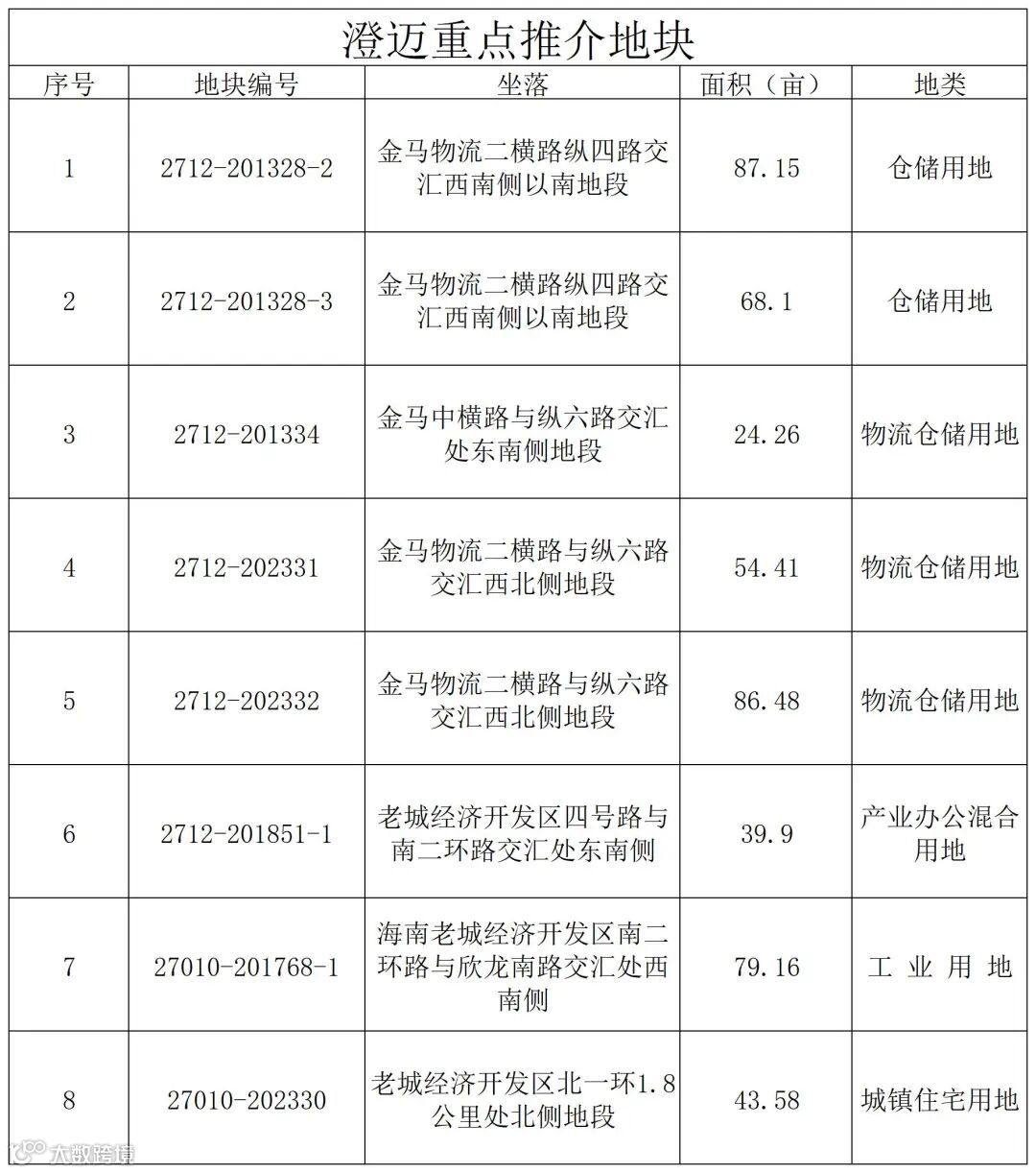 本次“推介会”重点推介地块共计8宗,总用地面积483.04亩,其中产业办公混合用地1宗、城镇住宅用地1宗、工矿仓储用地6宗。这些地块均位于海南老城科技新城,根据海南老城科技新城产业发展规划,这八宗地坐落现代物流功能区、高附加值加工及低碳制造功能区和辅助性产业功能区。