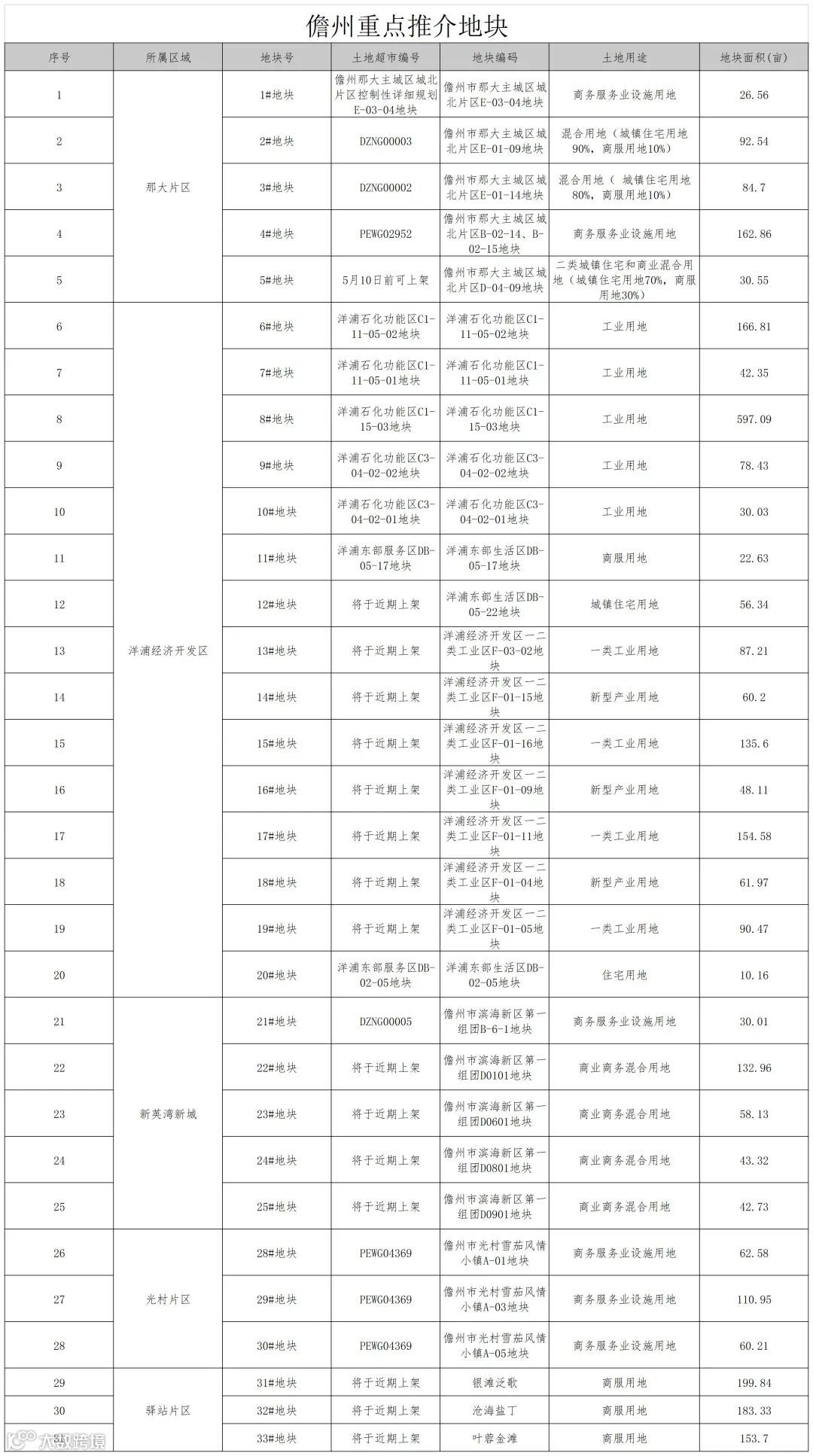 以下是地块信息(以各市、县实际发布的地块情况为准):