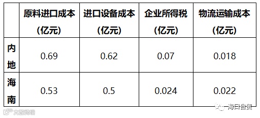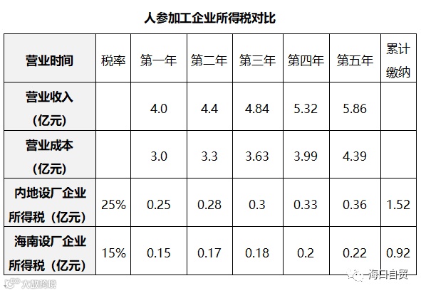 以国内某知名企业在海南设立人参加工子公司与在内地办加工企业进行对比分析,