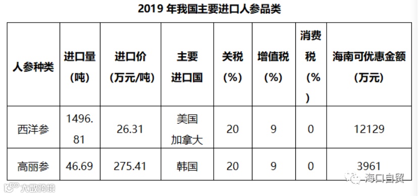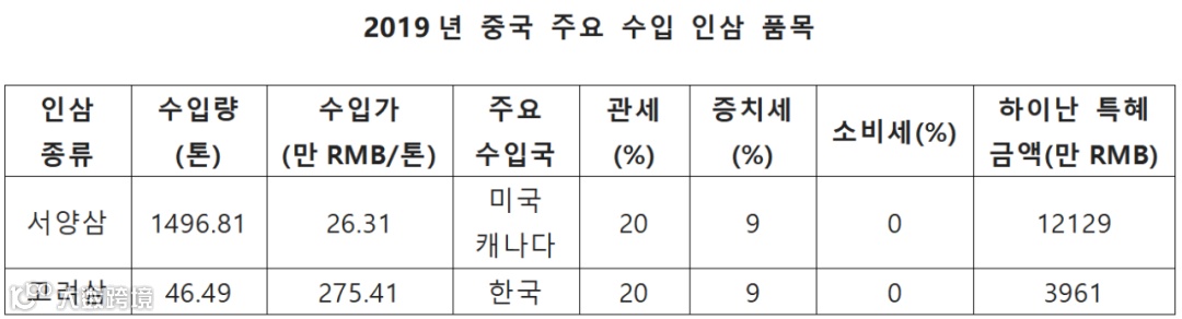 다음은 하이난 주요 수입 인삼 품목 세수 특혜 현황이다.