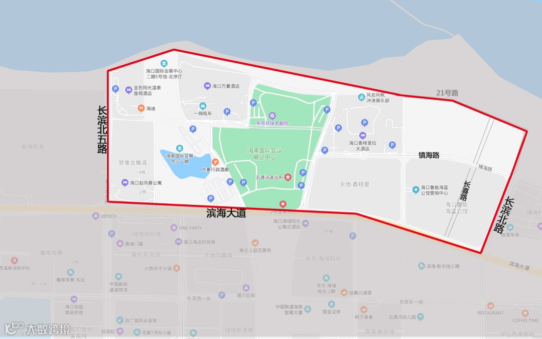 (1)滨海大道东往西行驶的车辆,应从滨海大道长彤路口开始由滨海大道北半幅右侧第三车道和第四车道(靠近非机动车道)进入海南国际会展中心指定区域停放。