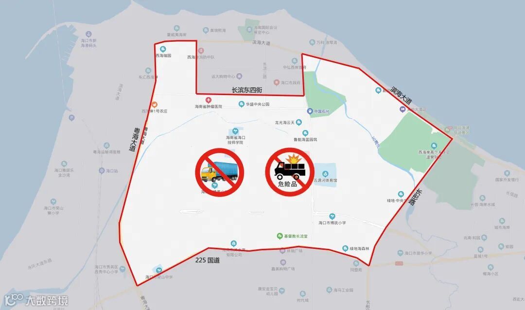 1、西至粤海大道路口(不含)、东至长彤路口(不含)、南至225国道(不含)、北至长滨四街(管控圈管控区域禁止5吨(含)以上货车及危化品车辆进入)