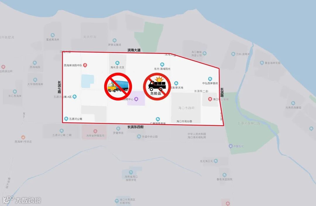 西至长滨七路口、东至长源路口、南至长滨四街、北至滨海大道南半幅路段;(分流圈管控区域禁止5吨(含)以上货车及危化品车辆进入,允许社会车辆进入分流圈管控区域,适时分时分段采取限流措施)