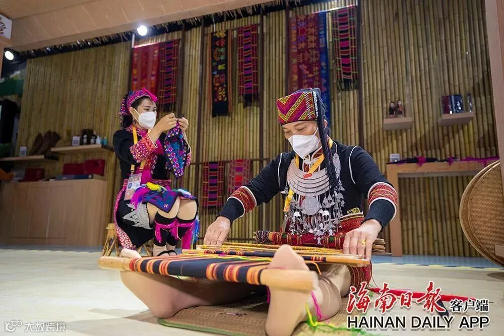 11月5日,在第五届中国国际进口博览会五指山举办的人文交流展台,非物质文化遗产表演。图源海南日报。