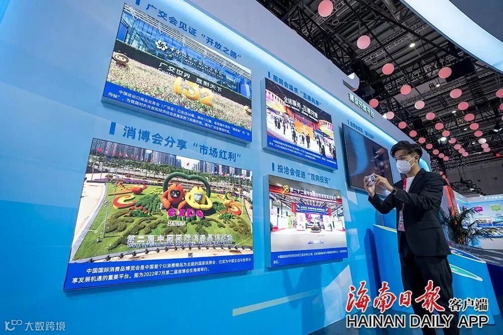 以“潮起海之南 逐梦自贸港”为主题的海南馆,综合运用数字技术手段,结合多元化的图片图表、实物模型、宣传视频等展览要素,展示海南十年来在改革开放、创新发展及自贸港建设等方面的成就,解读海南政策优势、现代产业优势、区位优势,介绍未来发展定位和具体招商项目。不少观展者沉浸其中,驻足了解海南自贸港扩大开放的故事,寻找合作机会。五指山市积极利用进博会平台开展非物质文化遗产、五指山大叶茶等宣传展示活动。