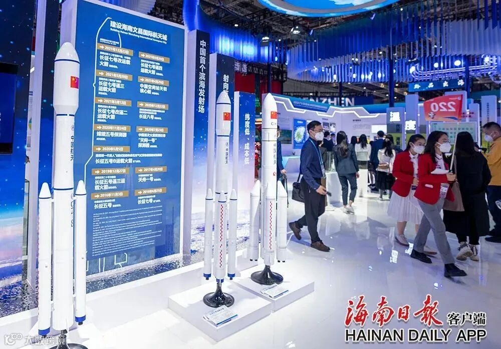11月5日,在第五届中国国际进口博览会中国十年对外开放成就展上,观展人士关注海南元素。图源海南日报。