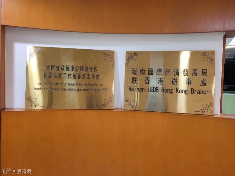 海南国际经济发展局香港办事处、海南省政协琼港经济发展合作推进工作组香港工作站铭牌
