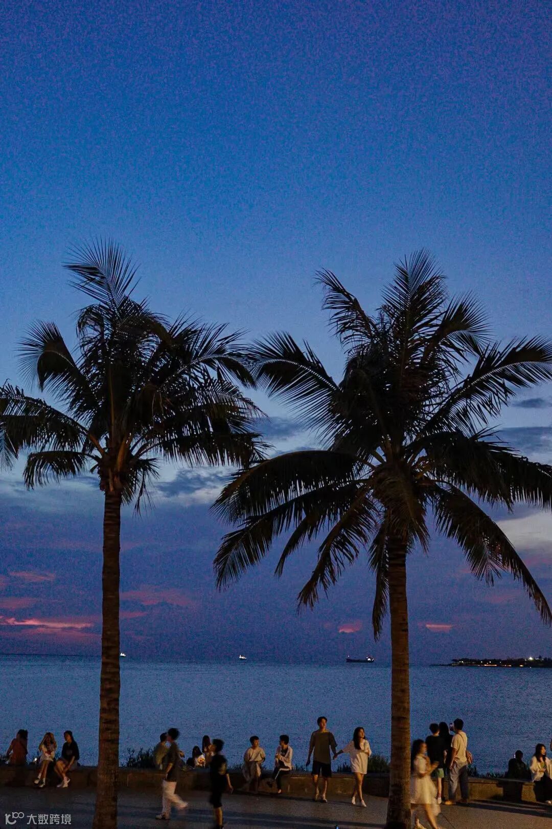 |晚上7:00的海口湾,岛民们惬意漫步在栈道上