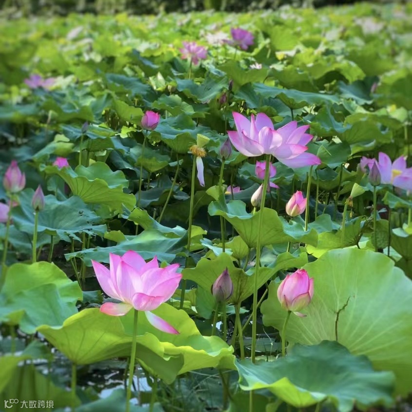 在江东大道,迈雅河湿地公园附近,你会欣赏到“接天莲叶无穷碧,映日荷花别样红”的惊艳场景。