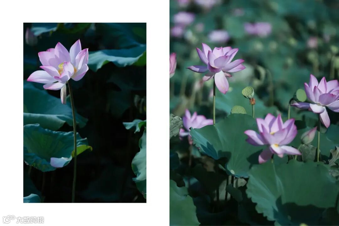 来到这里赏花,会发现这里的荷花开得十分密集,颜色多样,有粉色。白色还有粉色镶边的。