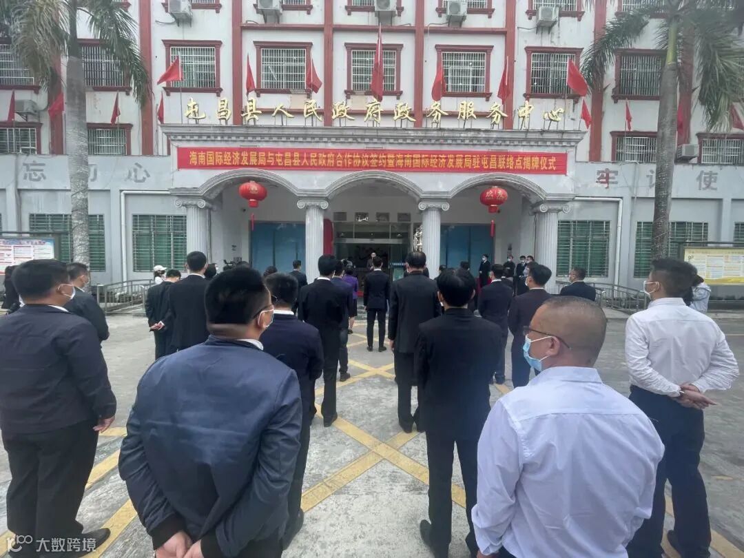 (图为海南国际经济发展局与屯昌县人民政府战略合作协议签约暨海南国际经济发展局驻屯昌联络点揭牌仪式现场)