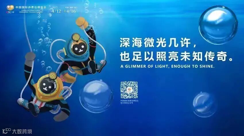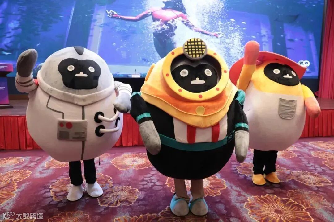 代表深海科技产业的“潜水猿”。在这一形象中,“元元”和“宵宵”穿着潜水服,头顶佩戴着探照灯,等待开启对深海的探索。潜水猿以“深海微光几许,也足以照亮未知传奇”的口号,用微光继续探照开放的机遇,探索开放的更多可能性,呼吁全球消费者与企业高瞻远瞩、放眼未来消费市场发展。