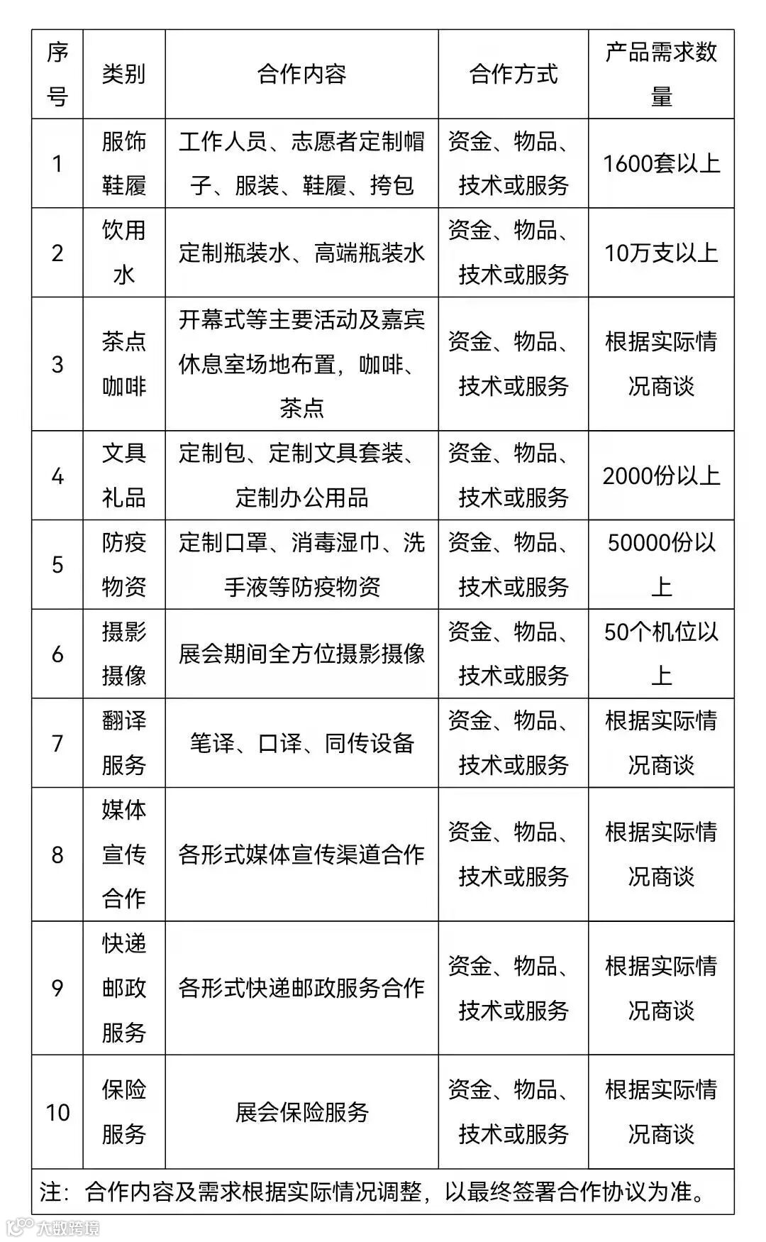 2022年消博会合作伙伴需求清单