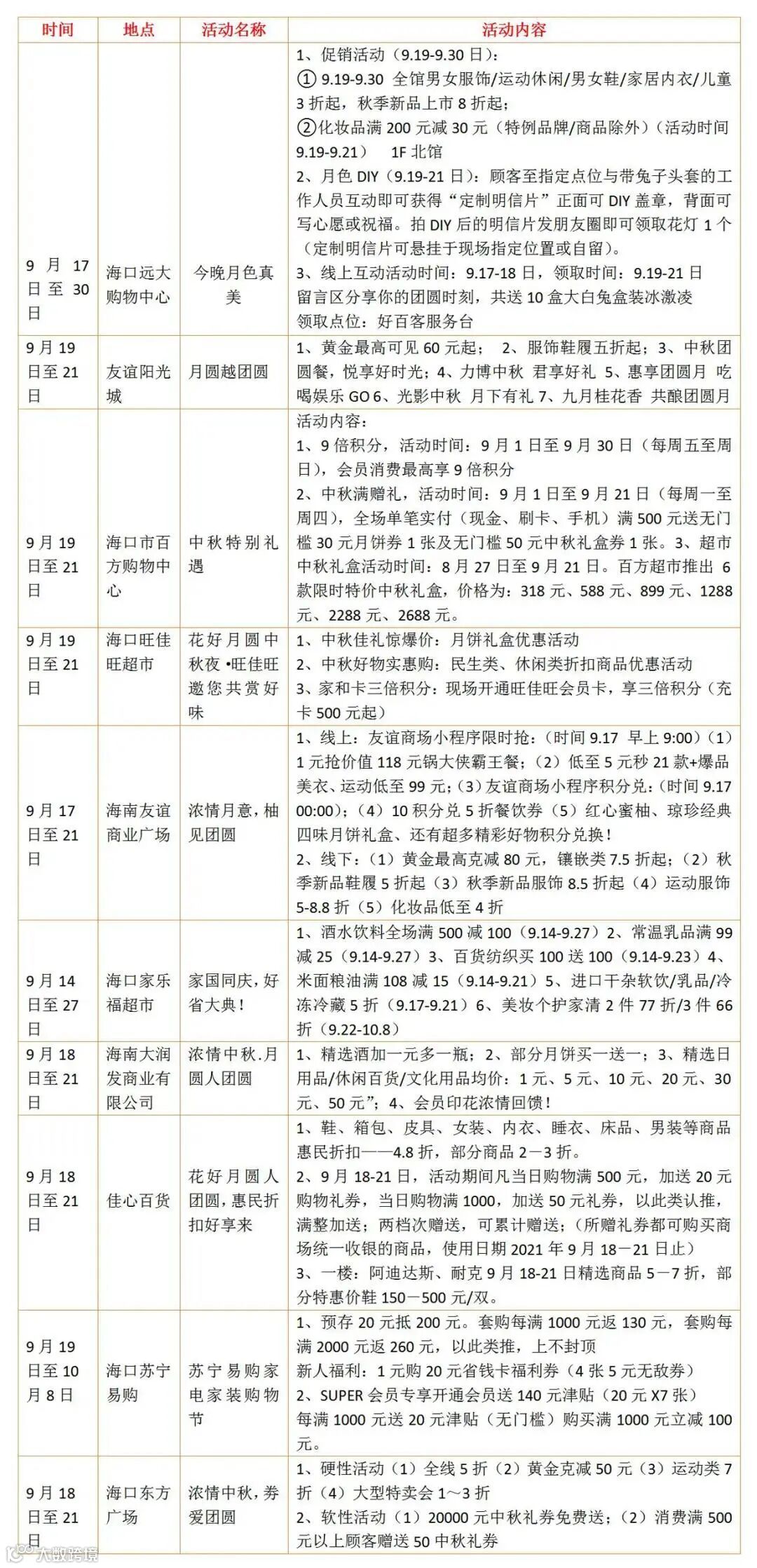 海口市各大商超纷纷推出中秋优惠活动套餐
