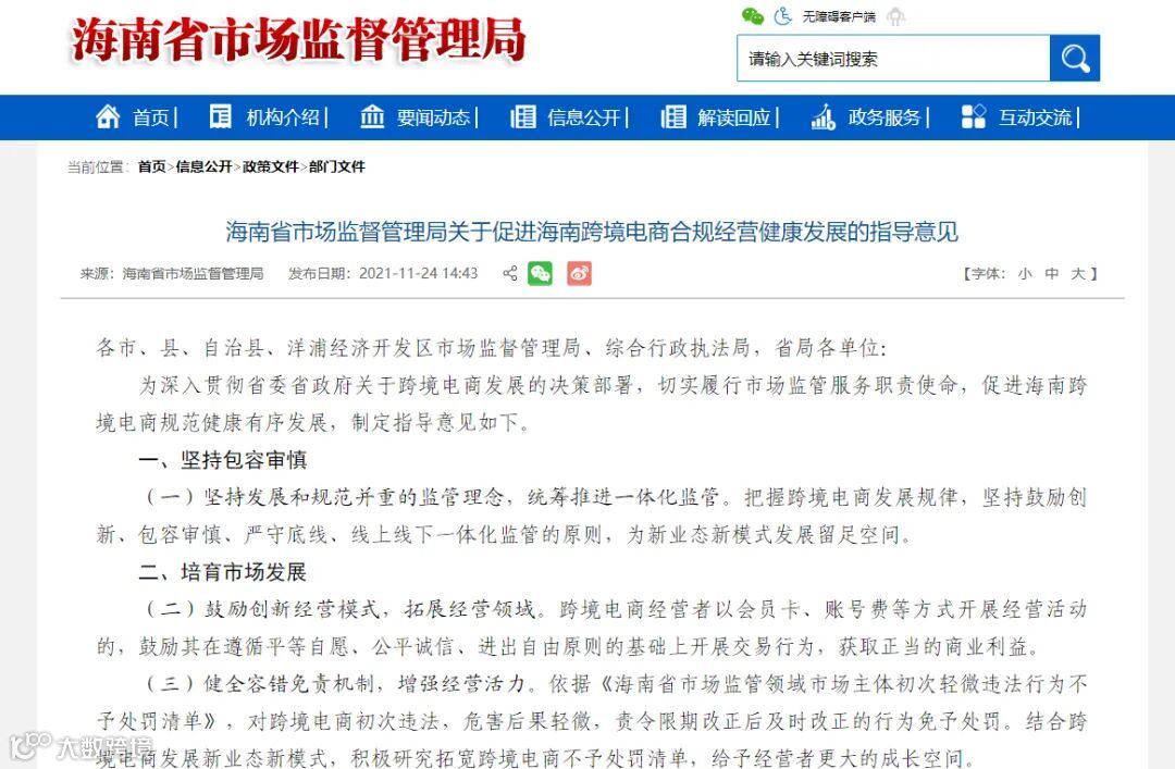 近日,省市场监管局出台了《关于促进海南跨境电商合规经营健康发展的指导意见》(以下简称《意见》),提出坚持发展和规范并重的监管理念,统筹推进一体化监管。把握跨境电商发展规律,坚持鼓励创新、包容审慎、严守底线、线上线下一体化监管的原则,为新业态新模式发展留足空间。