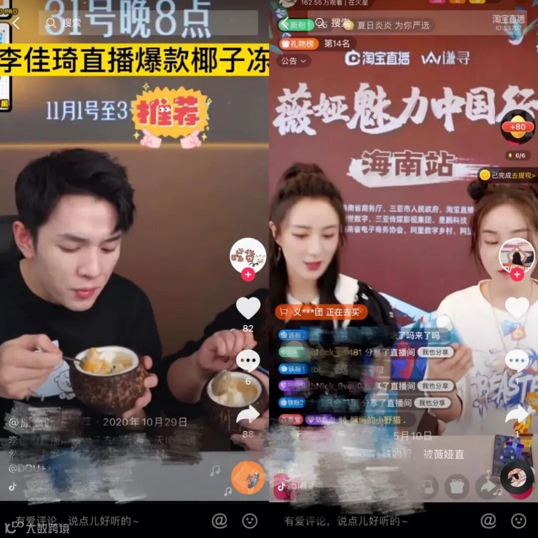 超火电商主播李佳琦、薇娅都有直播间推荐过椰子相关的产品,销量都很不错