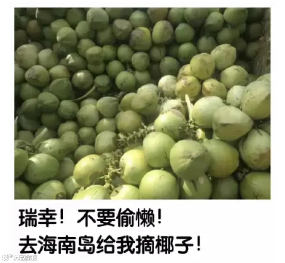 例如海南岛的椰子,都要被他们摘光了,大伙快一起组队,连夜去海南岛抢椰子吧等等😂😂😂