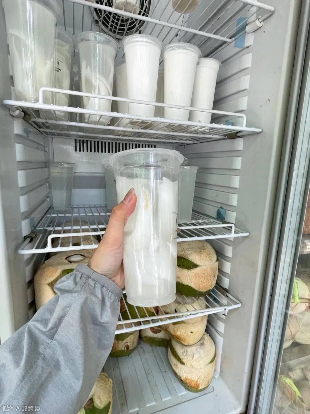 冰箱上贴着大的椰子10块、小的9块、杯装的11块