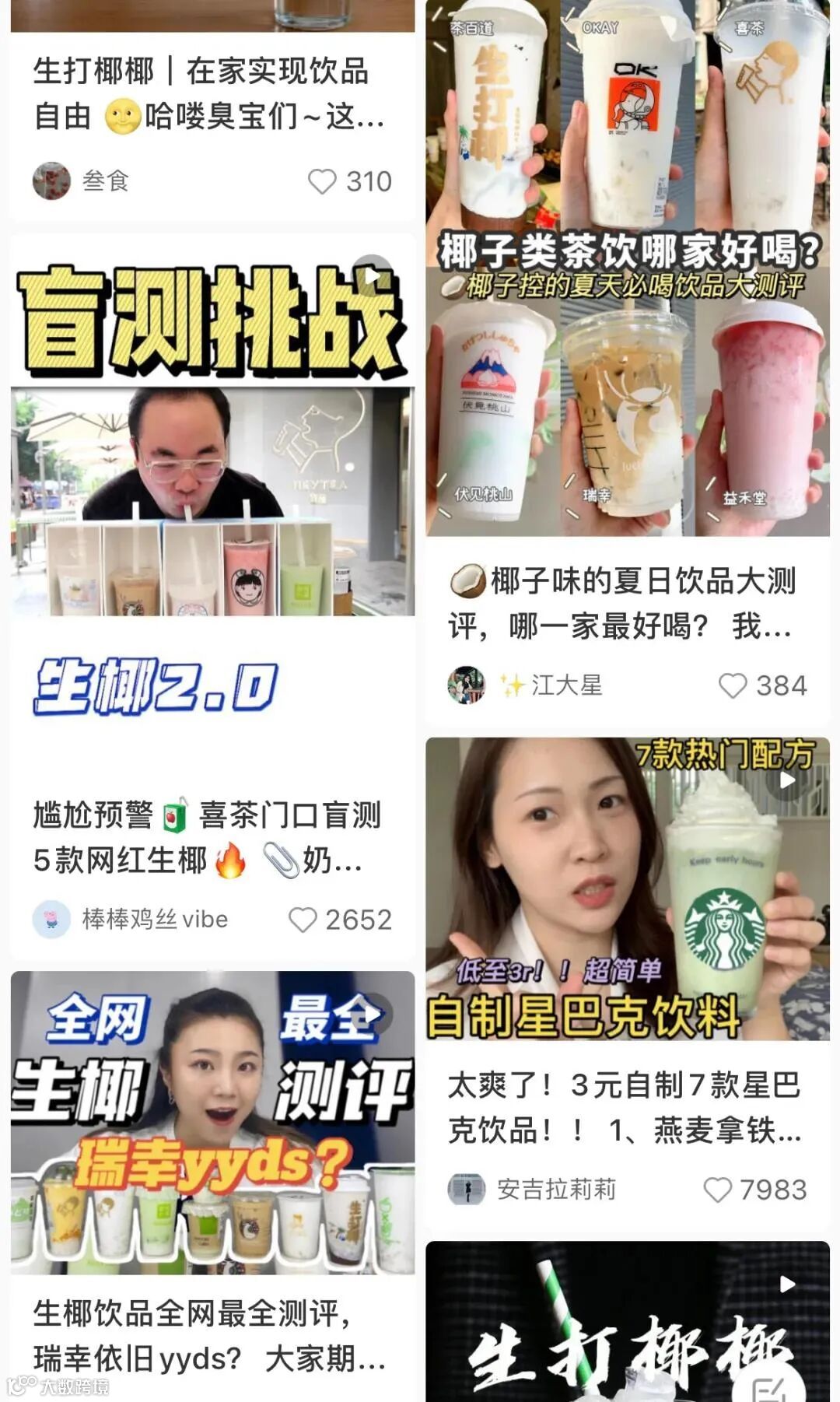 (小红书各种关于椰子饮品的测评笔记,点赞量都很高)
