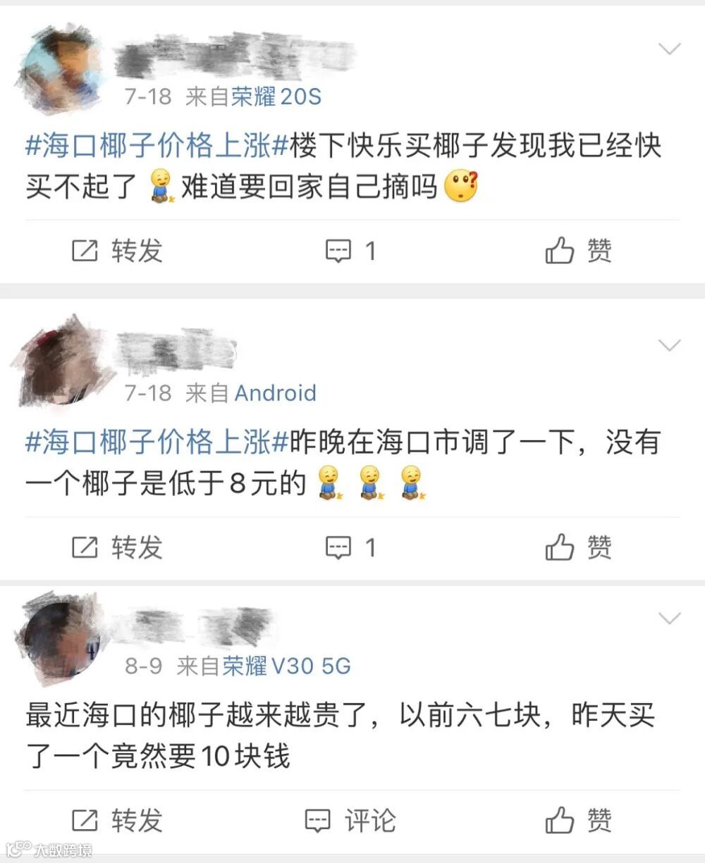 这段时间总是能听到身边的朋友在抱怨:海南的椰子是越来越贵了,咱们岛民都快喝不起椰子了!