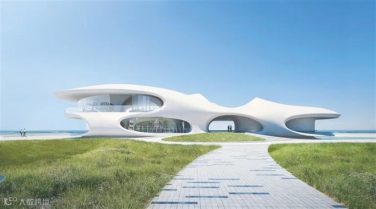 位于海口湾的云洞图书馆效果图。图/MAD建筑事务所