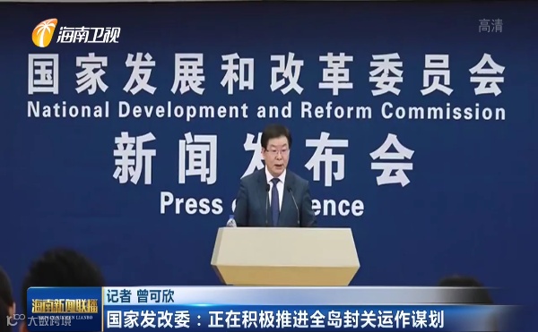 国家发展和改革委员会发言人 金贤东:(目前,我委正会同海南省和有关部门,积极推进全岛封关运作谋划,加快构建“1+N”工作体系,理清任务清单,分工负责落实,为海南自贸港全岛封关运作打下坚实基础。)