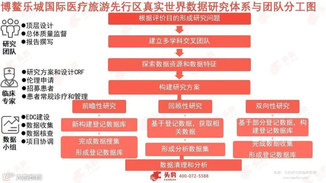 真实世界研究(Real World Study/Research,RWS/RWR),即在真实世界环境下收集与患者相关数据,通过分析获得医疗产品的使用价值及潜在获益或风险的临床证据。在各部委大力支持下,博鳌乐城先行区的真实世界研究体系初步形成,已形成研究问题,建立多学科交叉团队,探索数据特征和数据源,针对数据情况构建研究方案,确定构建登记数据库形式,最终使用数据开展统计分析。
