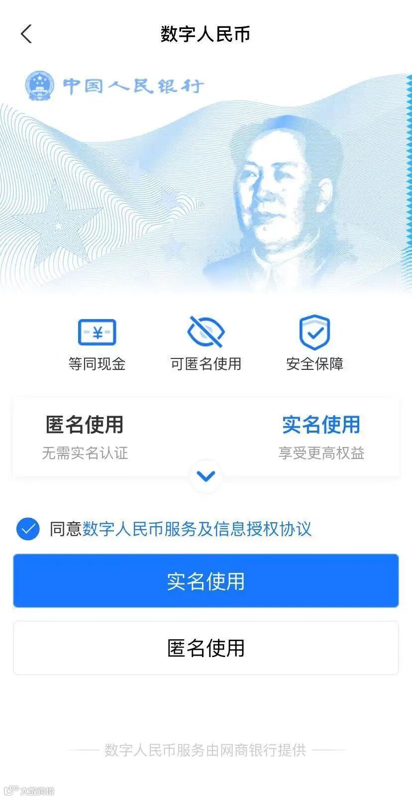 据悉,在网商银行数字人民币钱包的功能方面,用户可选择匿名使用和实名使用不同方式;另在业务场景上,包括转入、转出、转账和消费等。另外,目前六大国有银行数字人民币钱包下均增加了饿了么、盒马鲜生、天猫超市三个子钱包。