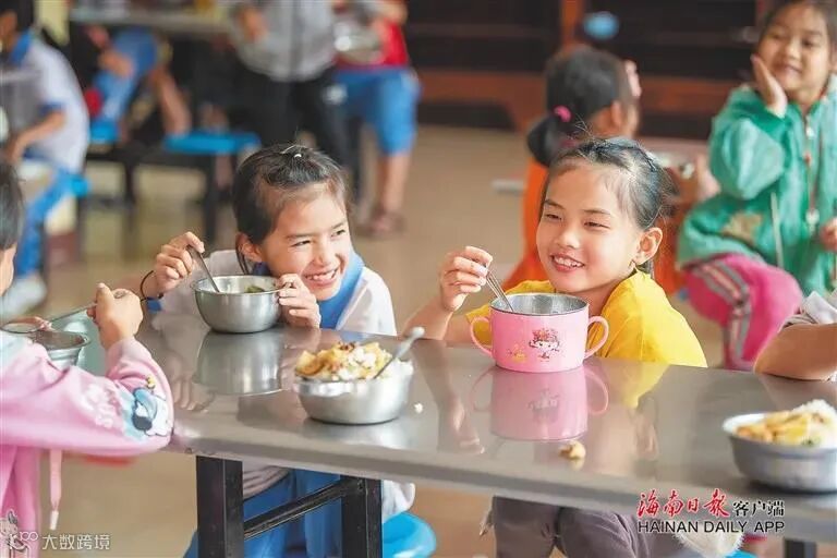 12月10日,在昌江黎族自治县王下乡中心学校,学生们享受学校的午餐。 近年来,昌江实施“教育扶贫移民”工程,先后投入9600万元,集中建设王下乡中心学校等4所学校,使山区学校的软硬件得到了大幅度提升,为学生接受高质量教育奠定良好基础。 海南日报记者 袁琛 摄