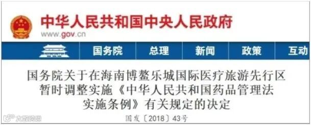 2018年4月,国务院将乐城先行区临床急需进口医疗器械交由海南省人民政府审批,同年12月再次赋予海南省政府对乐城先行区临床急需进口药品的审批权,为国际先进药械进入国内开辟了新的新通道。
