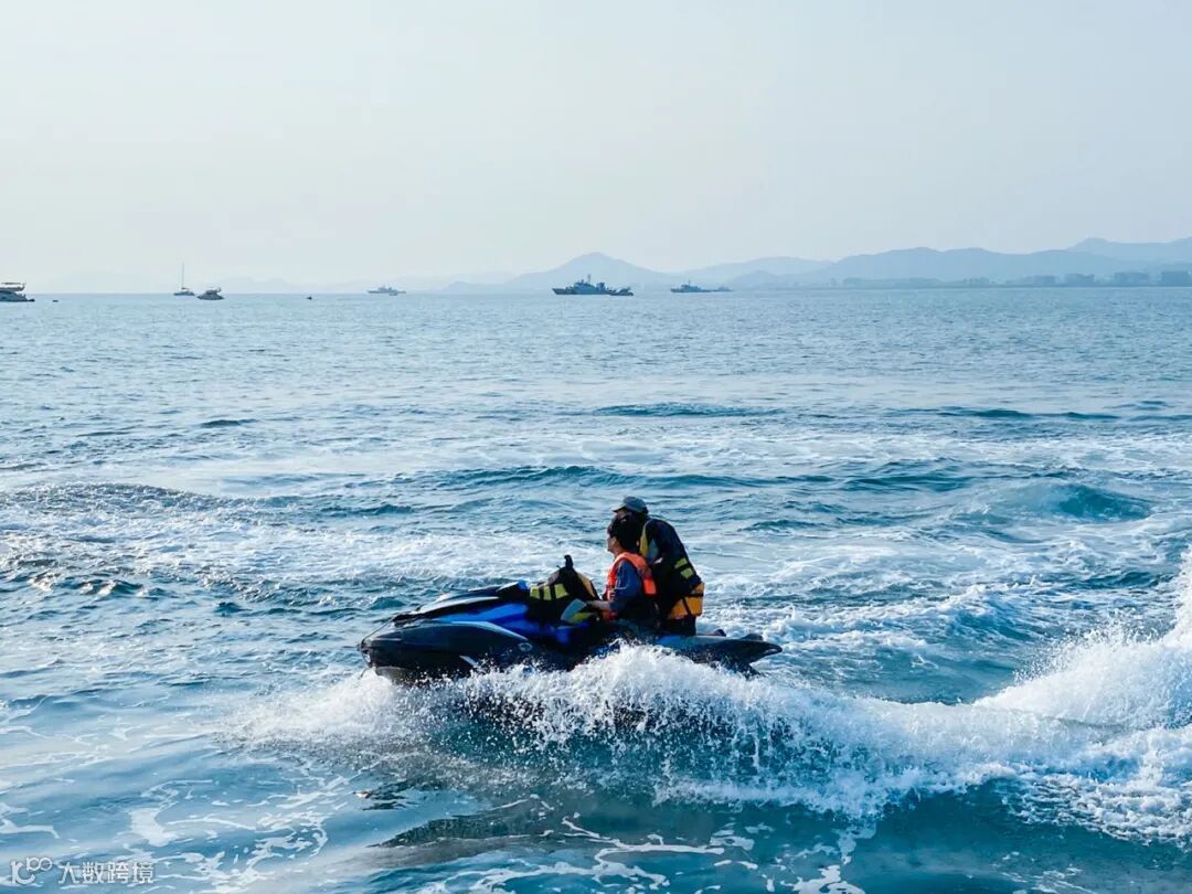 骑着摩托艇在海上竞速,听着耳边呼啸而过的风声,溅起一道磅礴的浪花,享受速度带来的乐趣。