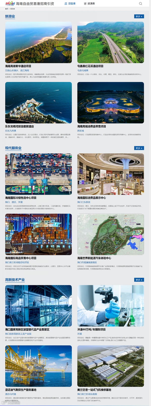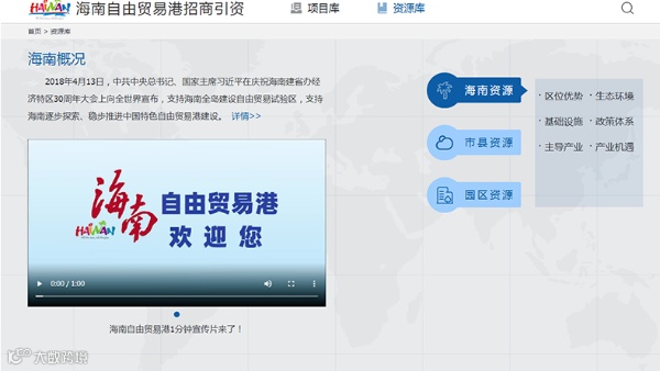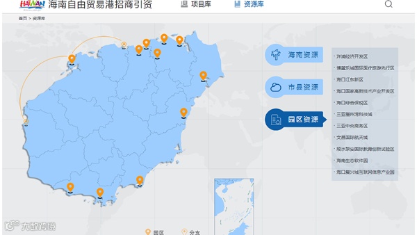 10月13日,在海南自由贸易港第三批重点项目集中签约活动中,海南自贸港招商引资项目库和资源库正式上线。投资者登录海南自贸港招商引才网,进入海南自贸港招商引资项目库、资源库,即可全方位了解海南省和各市县、各园区最新的商务动态、产业政策、招商项目和投资资源等信息。