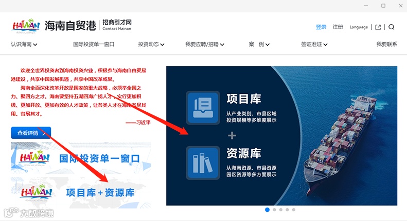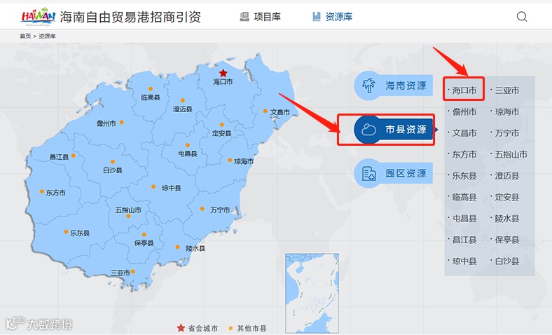 如何进入资源库海口投资页面?