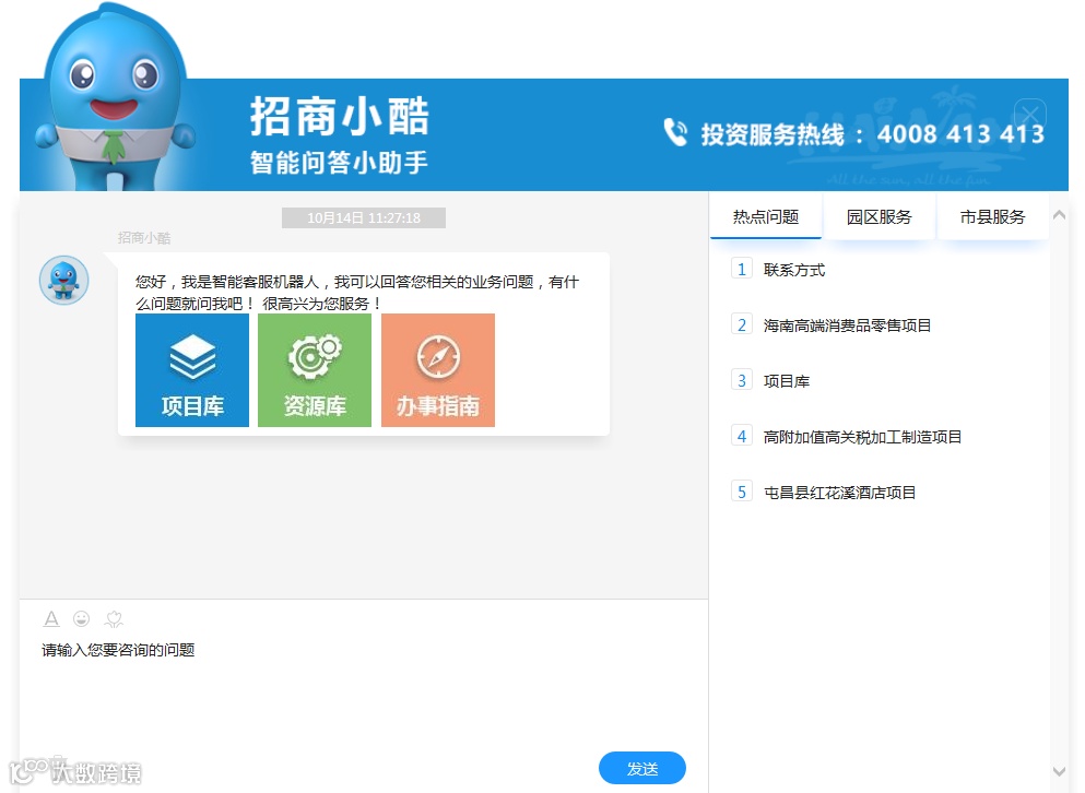 此外,项目库和资源库开通了智能问答系统,将海南的优惠政策、招商项目和投资资源等常见问题录入其中,实时在线解答企业诉求。