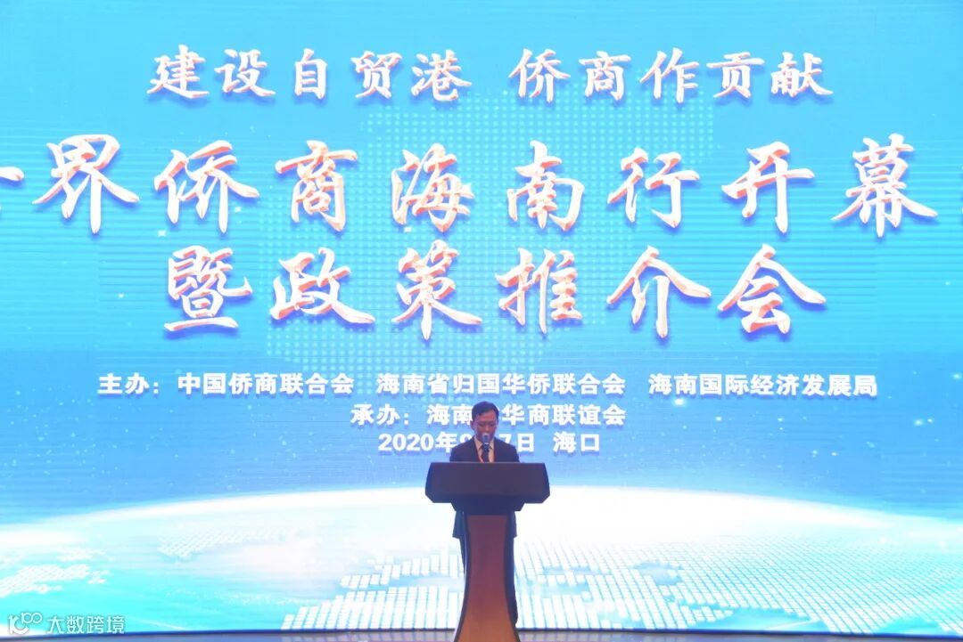 2020年9月7日,中国侨商联合会、海南省归国华侨联合会、海南国际经发局联合省委自贸办、省发改委、省旅文厅、省商务厅、海口海关、全球贸易之窗共同举办以“建设自贸港 侨商作贡献”为主题的“世界侨商海南行”活动。来自14个国家和地区的50余位知名侨商出席活动。