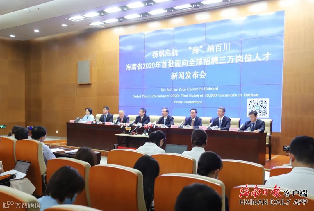 海南省2020年首批面向全球招聘三万岗位人才新闻发布会现场。海南日报客户端记者 周达延 摄